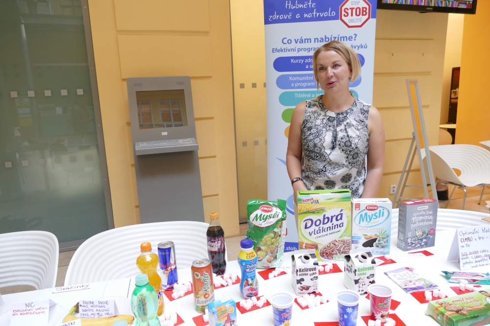 V rámci „výživné“ výstavky zájem vzbudilo znázornění obsahu cukru v běžně dostupných potravinách a nápojích. Děti i dospělí byli velmi překvapeni, kolik cukru obsahují jejich oblíbené dobroty! Zjistili např. že po snědení jedné tabulky čokolády nebo po vypití jedné krabičky slazeného kefíru dalece převýší doporučené množství cukru/den, a to ještě nezapočítali cukr z ovoce a dalších potravin, které během dne také přijmou.