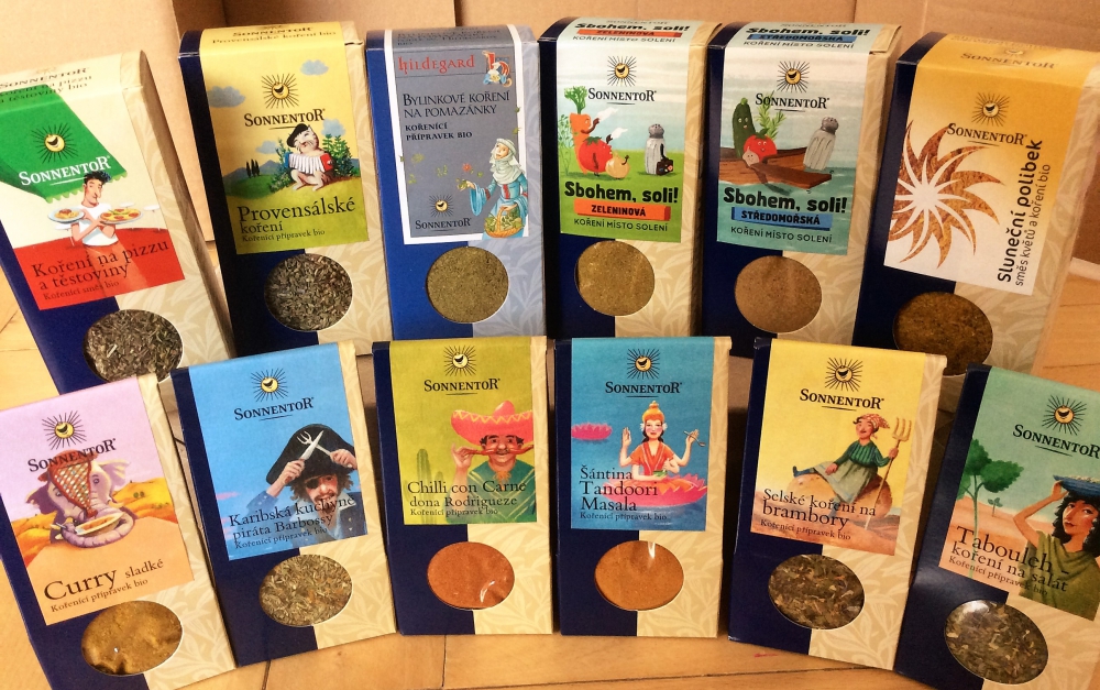 - Sonnentor – Wangovo koření na rýži, Koření na tofu paní Yoko, Šantina Tandoori Masala, Selské koření na brambory. Příjemně mě překvapily i sladké kořenící směsi, zkoušela jsem je do ranních kaší a dále Alaldinovo koření do kávy.