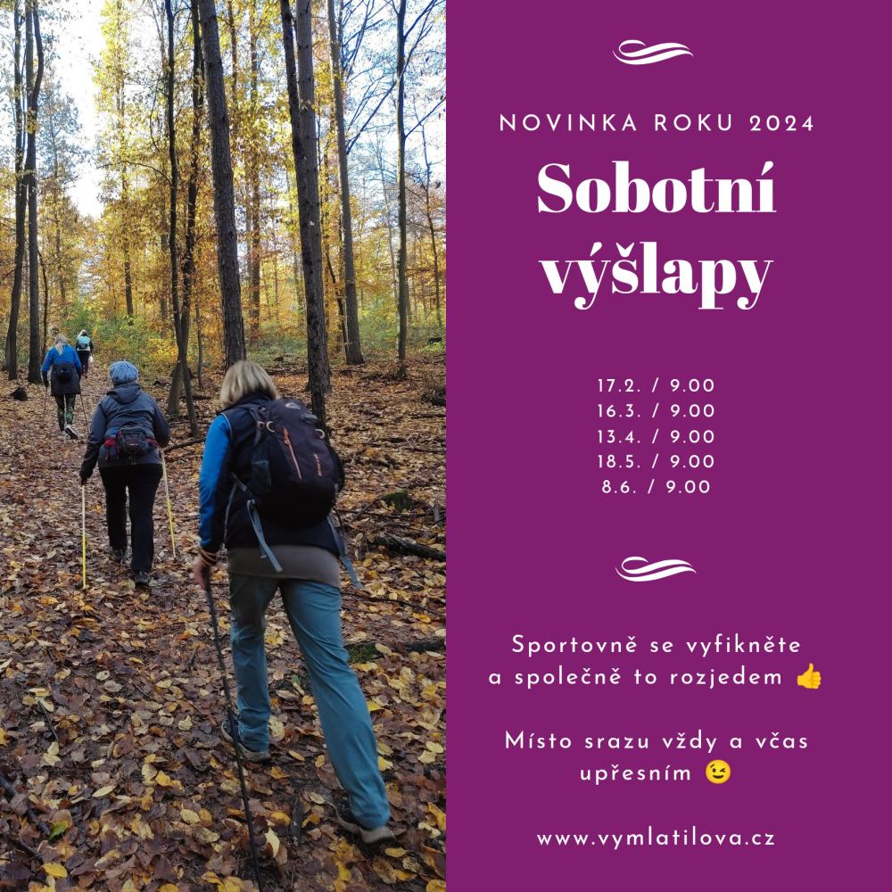 Informace o místě srazu a další důležité detaily vám vždy s dostatečným předstihem pošlu na maila a dozvíte se i na stránce tady, kde je současně možnost se na výšlap nebo kurzy NW přihlásit: https://www.vymlatilova.cz/sluzby/kurz-nordic/